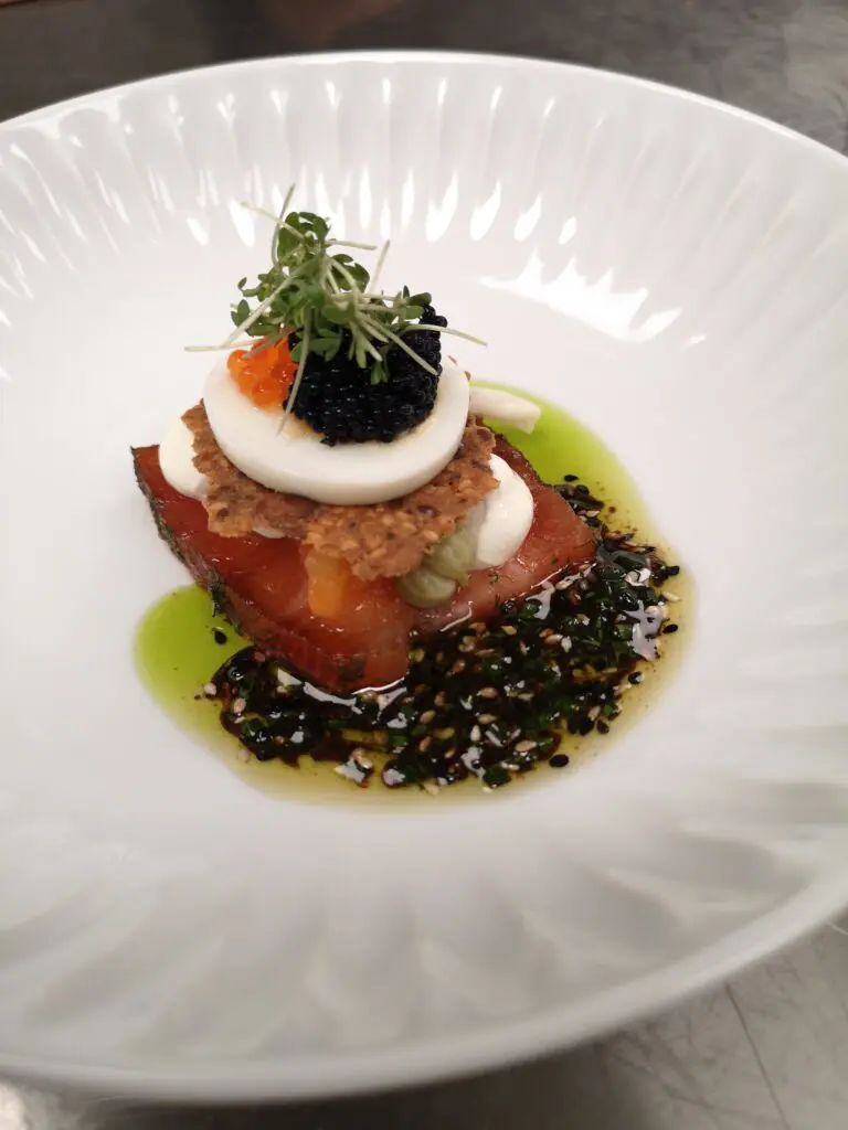 Westergaards laks – sauce vinaigrette – kapers af blomsterkarse