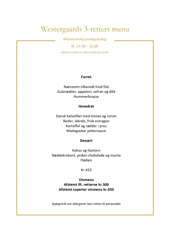 På Westergaards Hotel bestræber vi os på at bruge lokale produkter, og derfor kan du på vores nye menu finde Nørgaards Gedegouda med Bukkehornsfrø på vores ostetallerken, deres friskost i vores rabarberdessert og den drænede yoghurt på vores laks.